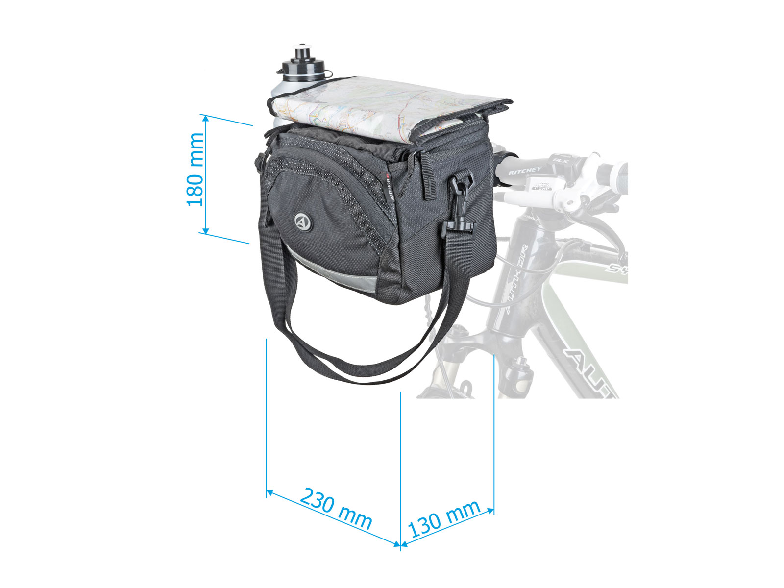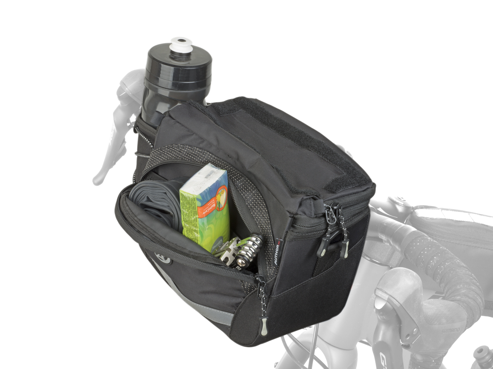 AUTHOR A-H735 je plně vybavená brašna na řídítka s držákem QRA ™. Speciální pouzdro na mapu uchycené suchým zipem umožňuje jednoduchou manipulaci s mapou a čtení v ní. Na straně je umístěna universální kapsa se stahováním, do které je možné umístit láhev nebo třeba sbalit větrovku. V přední a horní části jsou samostatné kapsy na zip vhodné pro převoz nutných drobností. (peněženka, telefon, kapesníčky ...). Konstrukce kombinuje panely vyztužené EVA pěnou s přizpůsobivou tkaninou pro dostatečnou pevnost brašny a ochranu převážených předmětů. Doporučujeme pro delší vyjížďky,výlety a cestování.