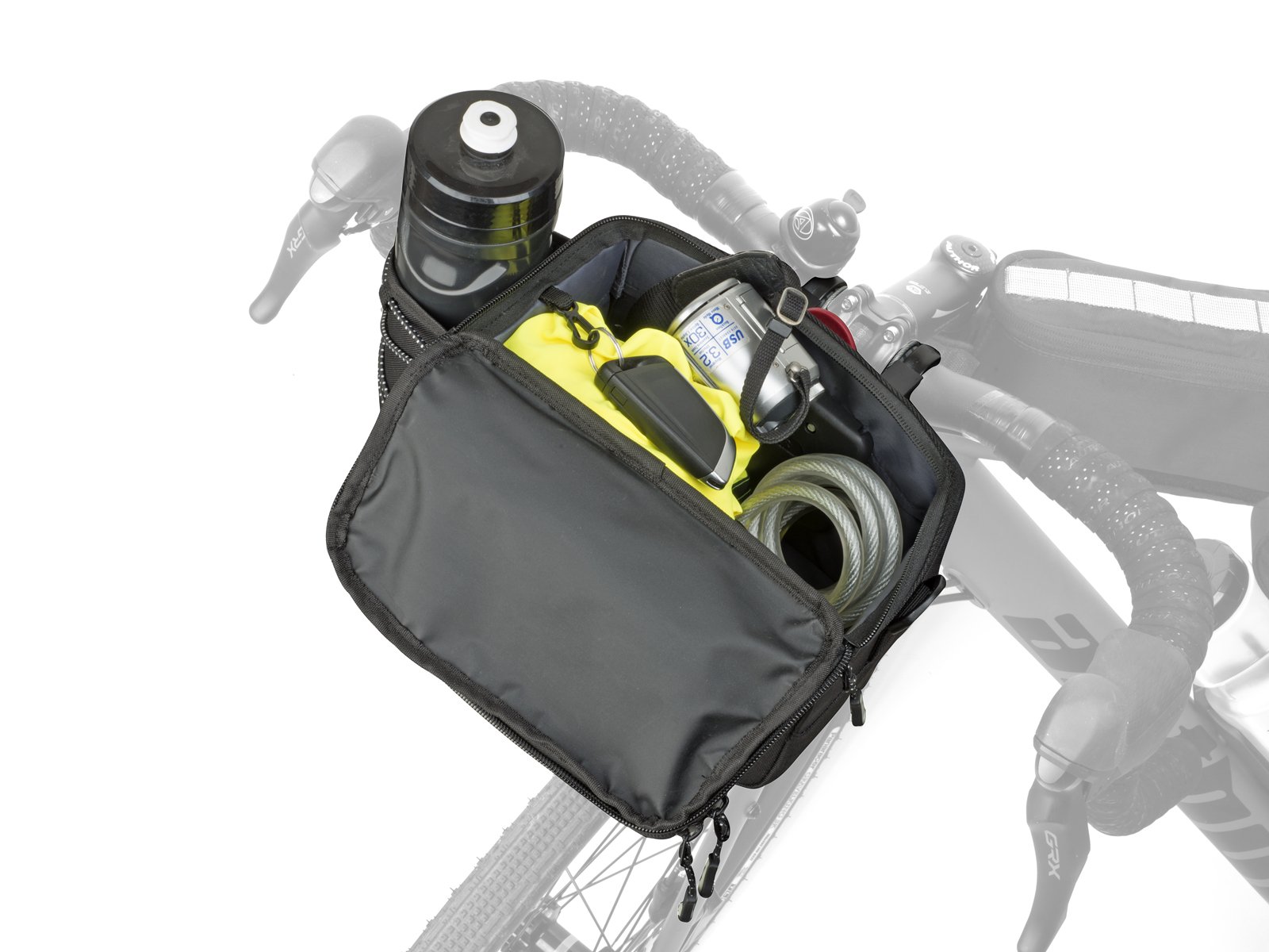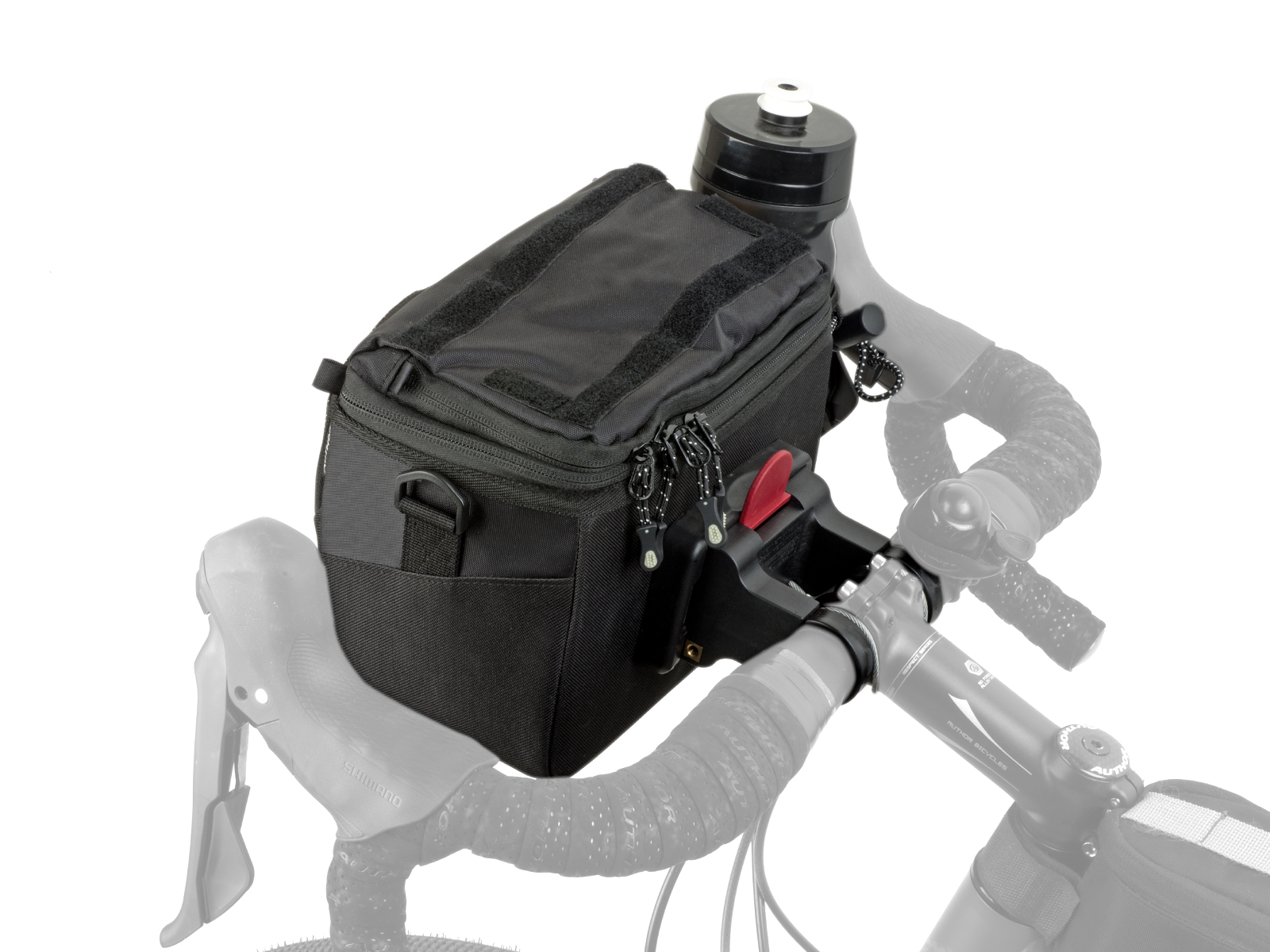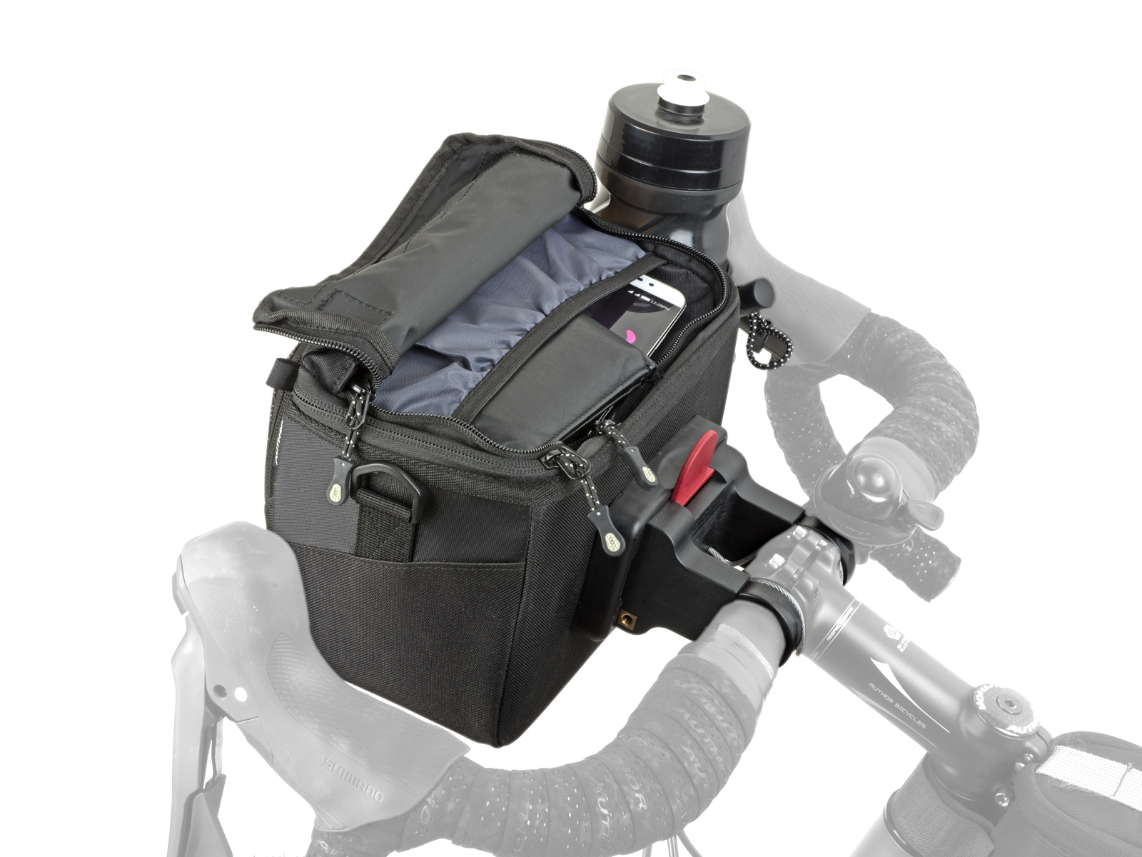 - Držák na řídítka QRA ™- univerzální objímky pro průměr 25,4 mm a 31,8 mm. Snadné a rychlé zacvaknutí brašny do držáku.