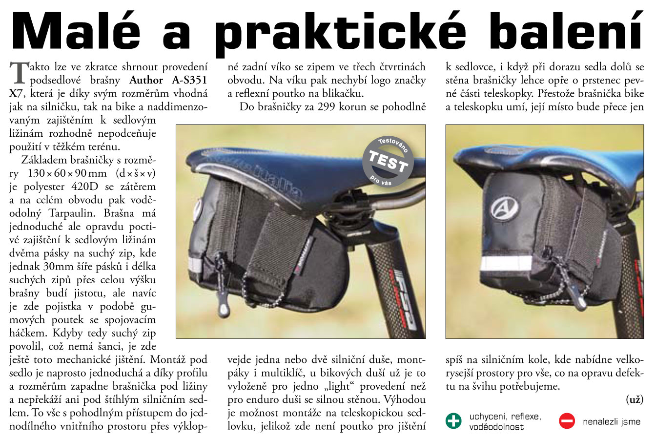 Brašna pod sedlo Author A-S351 je jednoduchá universální brašna s 1 hlavní kapsou. Navržena s důrazem na dlouhou životnost a spokojené používání, hlavní části z voděodolného materiálu Tarpaulin.