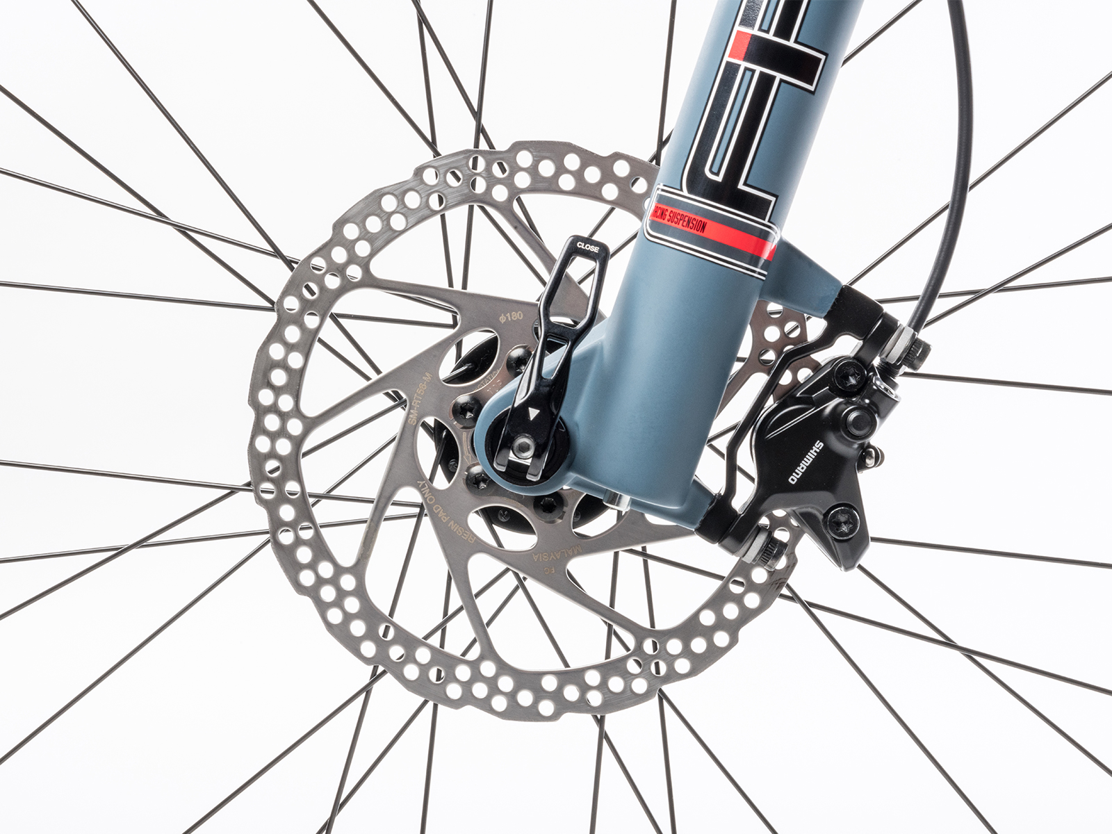 Náboje: AUTHOR Helium 15 / SHIMANO, 15 × 100 mm přední pevná osa, 12 × 148 mm zadní pevn