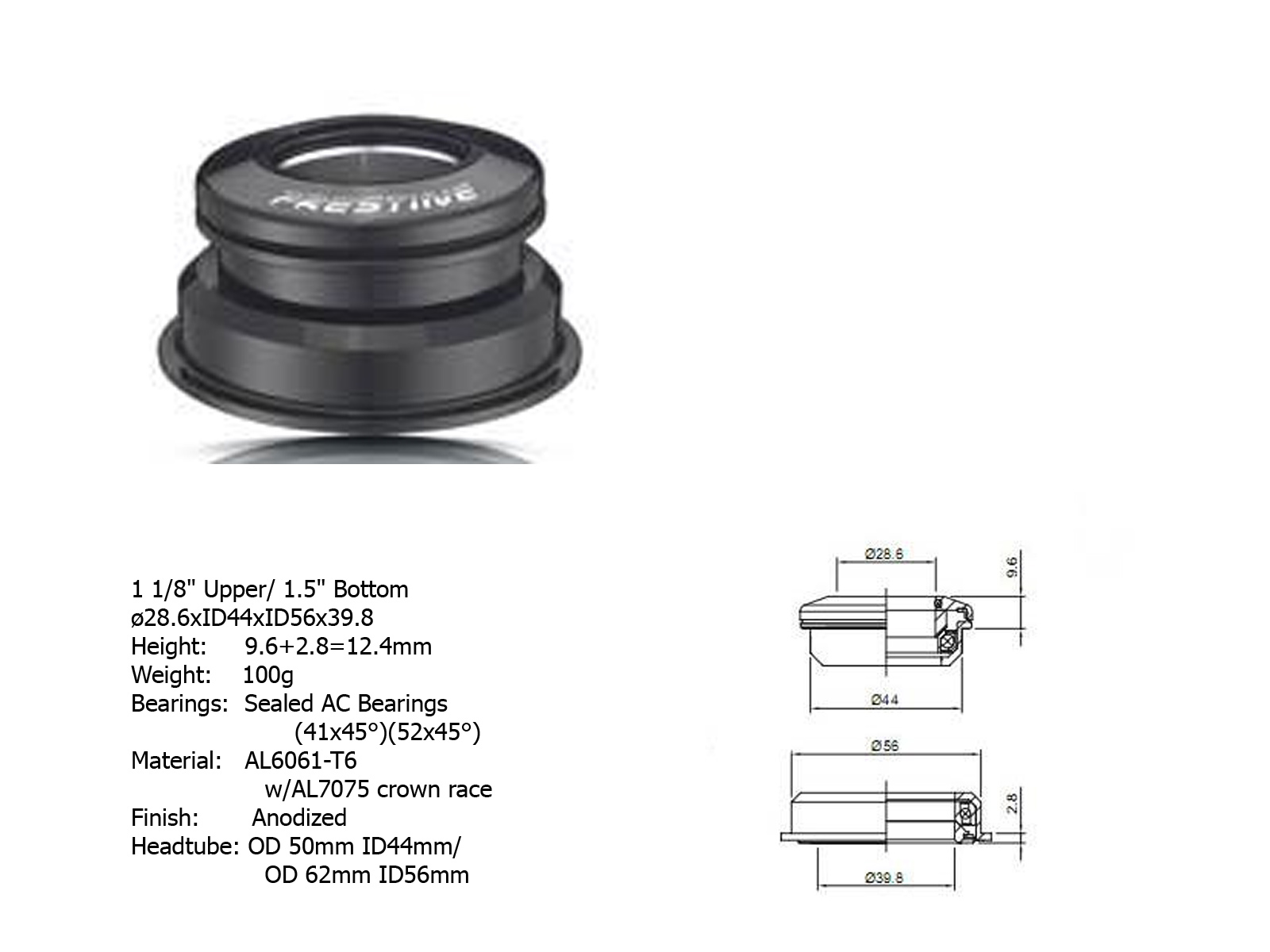 * 1 1/8" / 1,5"; horní d. 44mm / spodní d. 56mm / sloupek d. 39,8 mm* Materiál: Alloy 6061; * kuličkové ložisko