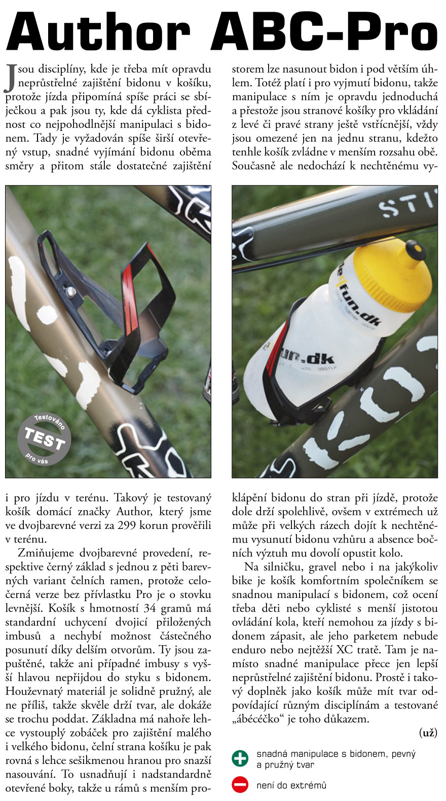 Košík na láhev AUTHOR PRO je velmi lehký a pevný. Speciální tvar usnadňuje vložení a vyjmutí láhve. Díky otevřené konstrukci je vhodný pro všechny velikosti cyklistických lahví.