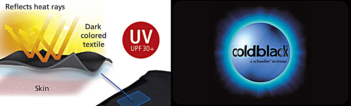 - Carbon Lycra materiál s Coldblack® povrchovou úpravou od firmy Schoeller ®.