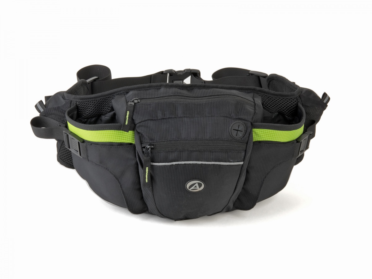 Ledvinka AUTHOR GALE s kompresními kapsami na dvě láhve. Kompresní popruhy pomohou stáhnout obsah ledvinky a zajistí stabilitu i při dynamickém pohybu. V horní části hlavní kapsy je umístěna samostatná kapsa na zip pro přepravu peněženky nebo mobilního telefonu. Záda jsou příjemně polstrována jemnou síťovinou zaručující dostatečný průchod vzduchu. Kapsa na zip na každé straně upínacího popruhu pro uložení malého občerstvení, klíčů nebo kapesníků. Reflexní prvky pro zvýšení bezpečnosti.