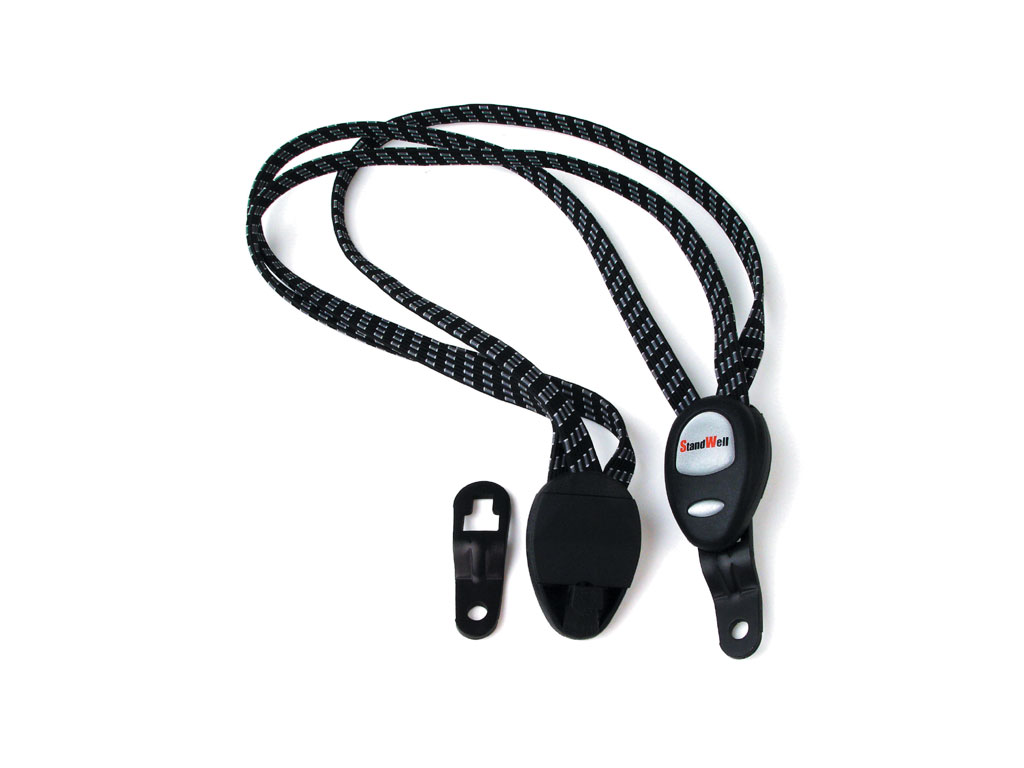 Třípramenný elastický popruh Author, vhodný na všechny typy nosičů, speciální plastová koncovka.