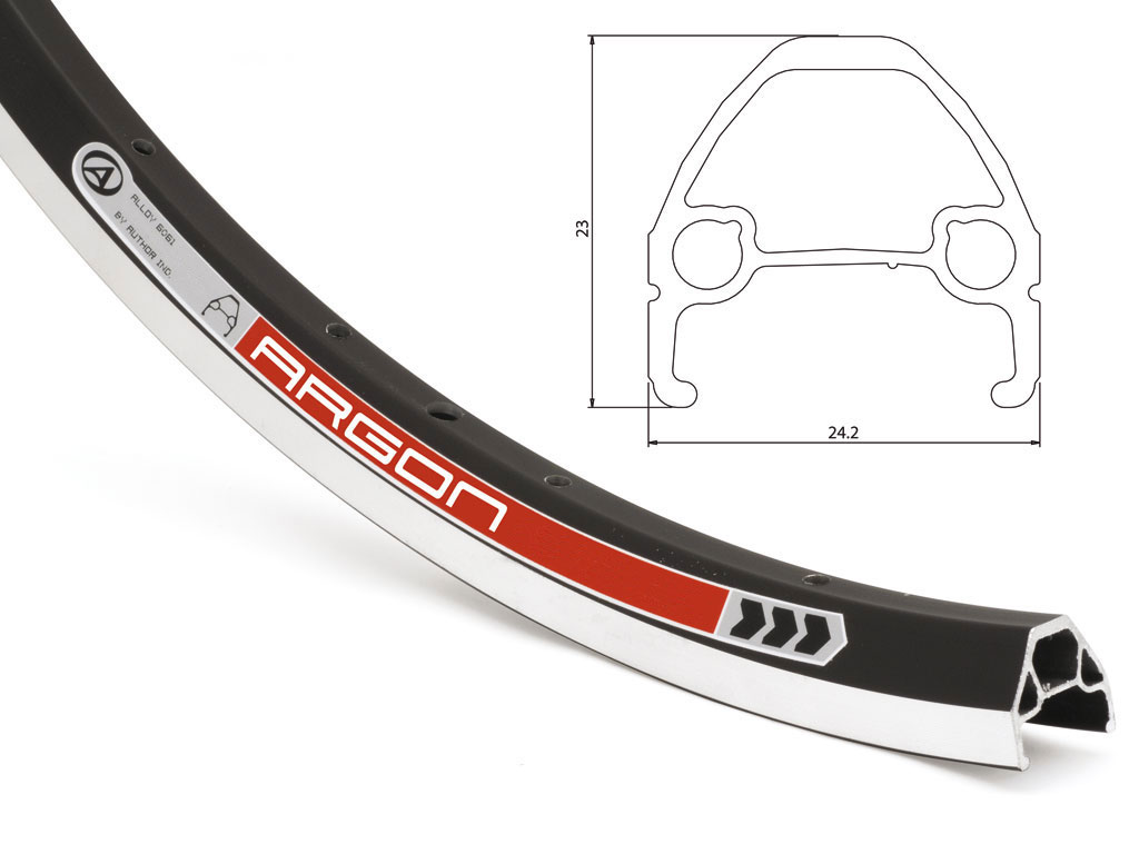 Dvoustěnný ráfek, 32 děr pro paprsky, profil z materiálu AL6061H-T6 spojen kolíky, hmotnost 520 g, ERD 558 mm, CNC obráběné boky, otvor pro AV auto ventil.