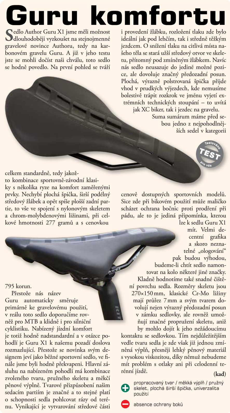 Sedlo AUTHOR GURU je kvalitní sedlo určené pro komfortní posed na různých typech kol. Rozšířený tvar sedla, lehká pěnová výplň s vysokou viskozitou zaručuje velmi komfortní posed.