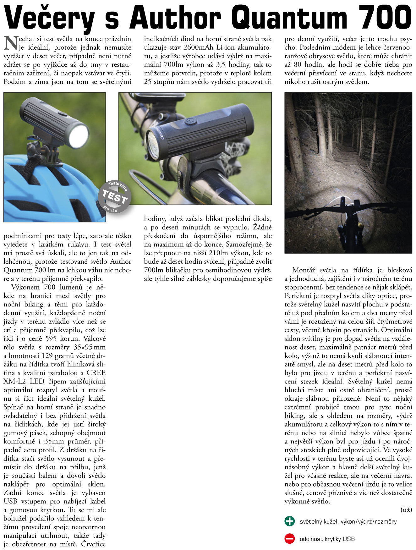 Typ LED / Světelný výkon: LED CREE XPG LED 300lm. Doba svícení: Konstantní svícení: 300 lm až 2,5 h. 150 lm až 3,5 h. 75 lm až 7 h. Režim blikání: 300 lm až 7 h. . Baterie: Dobíjecí LI-ion / 3,7 V / 1200 mAh. Držák: Universální držák pro průměr 22 až 35 mm (vhodný i pro oválné profily). Ostatní: USB A / Micro-B kabel přiložen.