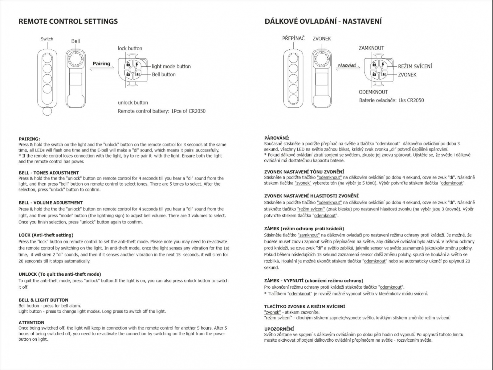 - Smart Memory vypínač - paměťový vypínač, dlouhým (1 s) stiskem vypnete světlo v kterémkoliv režimu (krátkým stiskem zapnete do stejného režimu ve kterém bylo vypnuto). Dvojstiskem přepnete mezi módy blikání a svícení. Krátkým stiskem přepnete mezi jednotlivými typy blikání (intenzitami svícení).