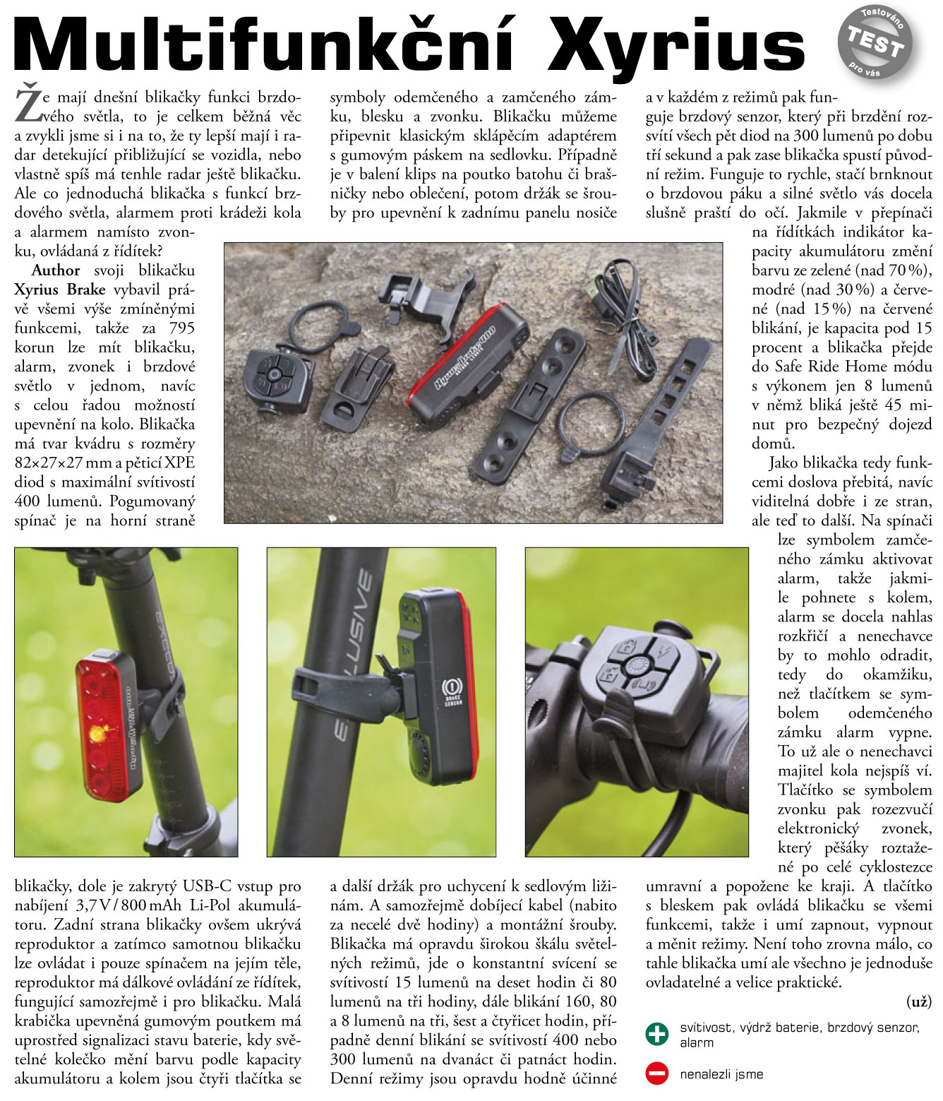 - Safe Ride Home mode – při nízké kapacitě baterie se světlo automaticky přepne do úsporného režimu, ve kterém vydrží svítit 20 minut.