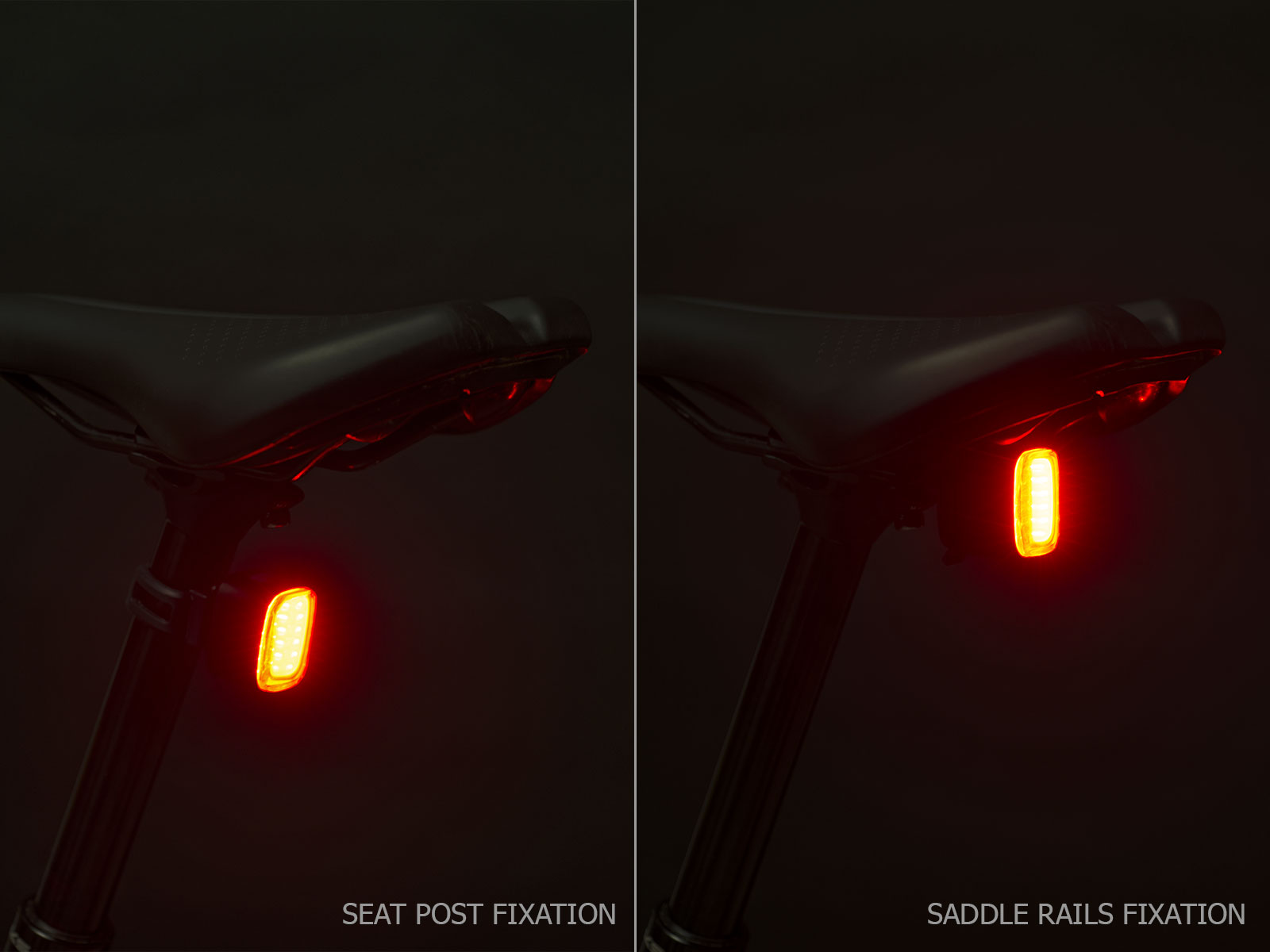 - Safe Ride Home mode – při nízké kapacitě baterie se světlo automaticky přepne do úsporného režimu, ve kterém vydrží svítit 45 minut.
