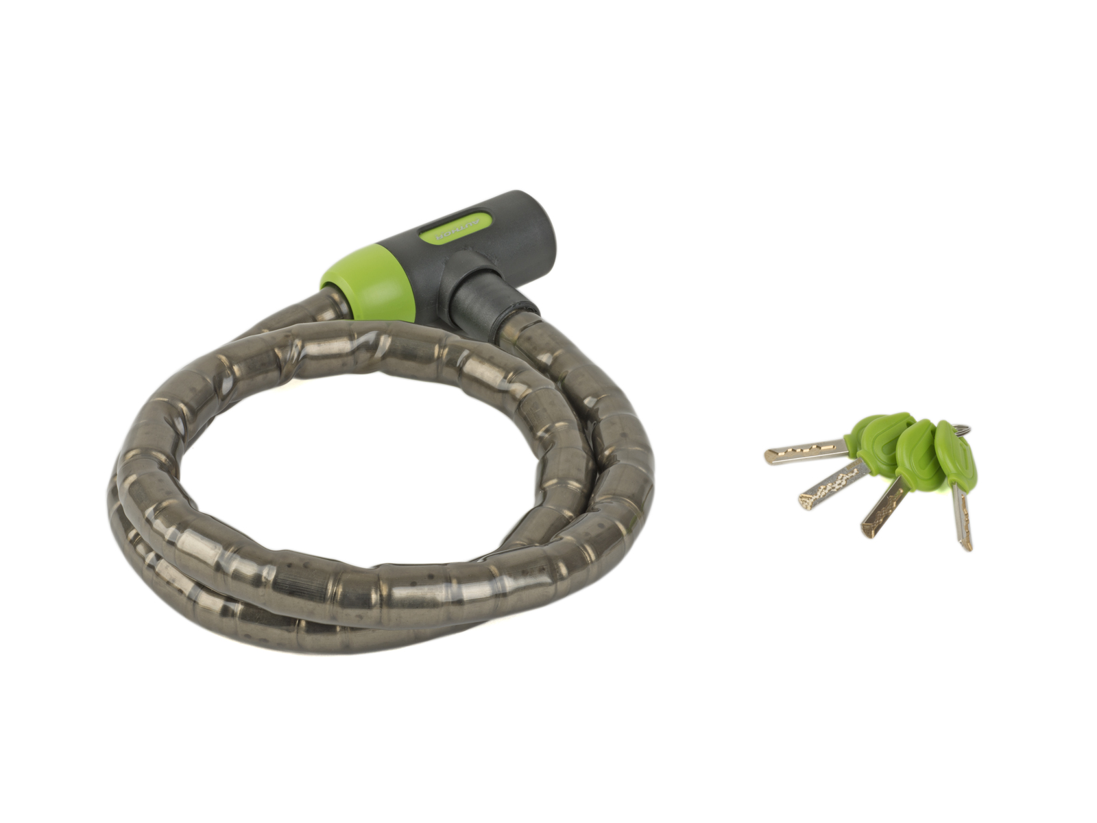 Lehký a ohebný zámek AUTHOR ACL-90 s ocelovým opláštěním průměru 22 mm, které spolehlivě chrání vnitřní ocelové lanko. Měkký vinylový potah je šetrný k uzamykaným předmětům.