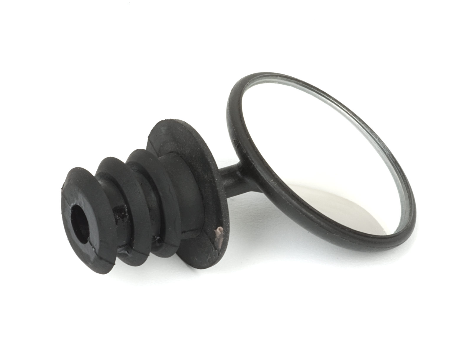Konvexní kulaté zrcátko s nastavitelným úhlem.