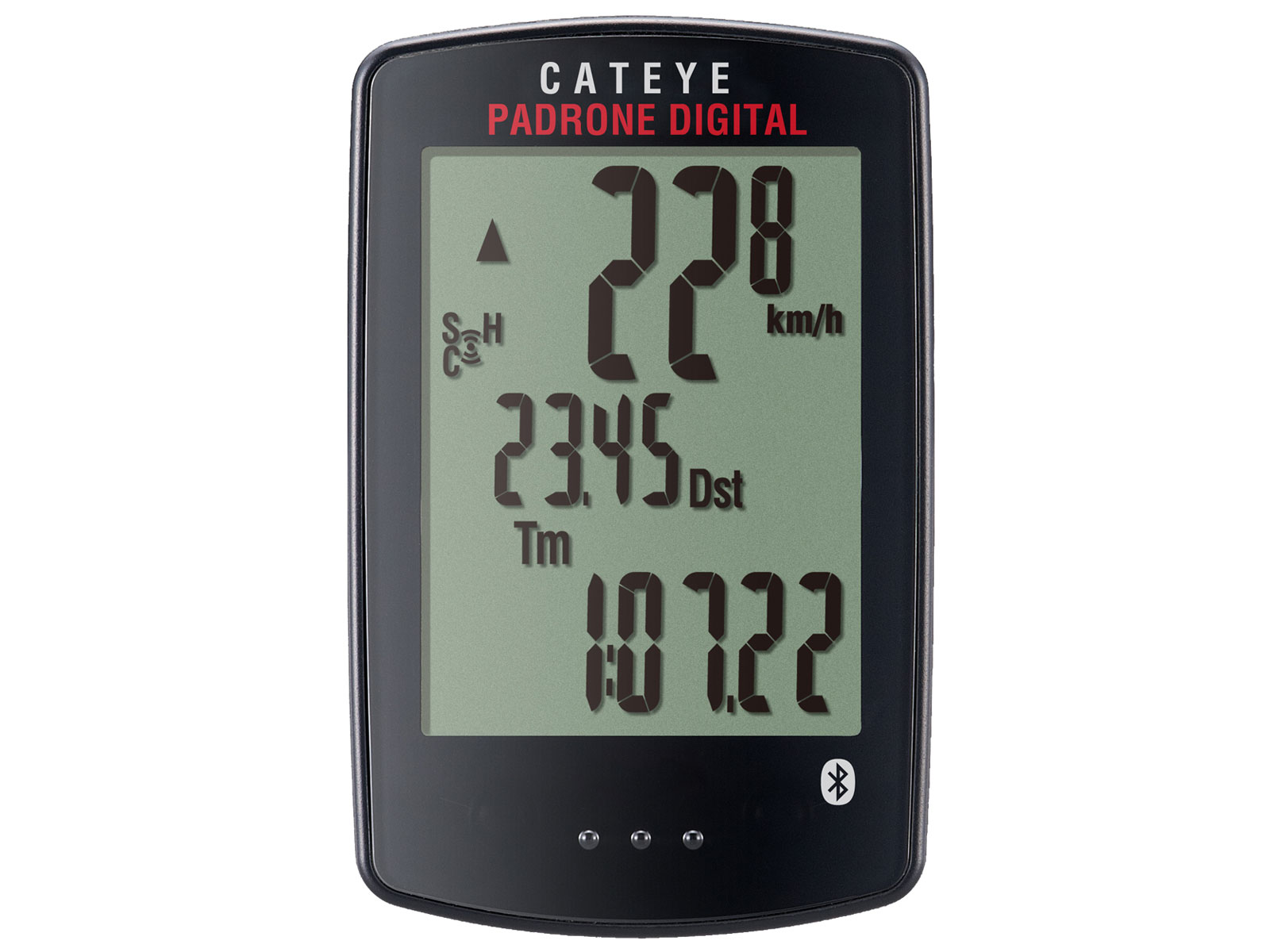 Tenký bezdrátový (měření rychlosti a kadence pomocí Bluetooth přenosu) /beztlačítkový cyklopočítač CATEYE s "obrovským" třířádkovým displejem a číslicemi pro dobrou čitelnost bez brýlí. Funkce: denní (1 a 2) / celková vzdálenost; okamžitá / průměrná / max. rychlost a kadence ( případně TF po dokoupení snímače HR-12); čas jízdy; hodiny. Doplňkové funkce: funkce Pacer - indikátor (šipky) poměřující okamžitou a průměrnou rychlost; nastavitelné dva průměry kola a celková vzdálenost; aut. funkce START / STOP; Bluetooth přenos (snímač rychlosti/kadence na zadní vzpěru) s možnost použití dvou snímačů rychlosti s jejich automatickým rozpoznáním; indikátor stavu baterie a otočný držák "Flex-Tight". Komunikace se Smartphone pomocí aplikace CATEYE s možností nastavení menu a displeje cyklopočítače. Možnost stažení dat do aplikací CATEYE Atlas, STRAVA nebo Training Peaks.